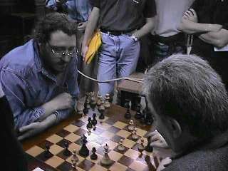 En esta ocasión se alzó con el triunfo el ruso-israelí Ilya Smirin, quien derrotó en la partida decisiva al brasileño Rafael Leitao , de buena perfomance. Partida No 191. Open New York 2000. Blancas: Leitao,R. Negras: Smirin,I. India del Rey. 1.d4 Cf6 2.c4 g6 3.Cc3 Ag7 4.e4 d6 5.Ae2 0-0 6.Ag5. (En nuestro medio es Ariel Sorín el principal adepto a esta variante.) 6...Ca6 7.Dd2 e5 8.d5 c6 9.f3 Da5 10.Ad3 Cc5 11.Ac2 b5! (Un enérgico sacrificio de peón para tomar la iniciativa.) 12.cxb5 cxd5 13.exd5 Ab7 14.Td1 a6 15.a3 Ccd7 16.bxa6 Axa6 17.Cge2 Cb6 18.Ad3 Axd3 19.Dxd3 Tfc8 20.0-0 (Había que probar 20.Db5 para tratar de aliviar la presión mediante el cambio de damas.) 20...Cc4 21.Tb1 Cd7 22.Ca2? Db6+ 23.Rh1 Cxb2! (Sin temor a fantasmas , toda vez que 24.Dd2 es respondida con Cc4.) 24.De4 Txa3 25.Cac3 Da6! (Oportuna desclavada aprovechando la futura indefensión de la torre de f1.) 26.Txb2 Taxc3 27.Td1 Ta3 28.Tbd2 Cc5 (Peón de ventaja, mejores piezas; en estos casos la sobrevida del bando débil sería milagrosa.) 29.Db1 f5 30.Ah4 e4 31.fxe4 Ta1 (0-1)